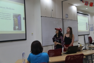 在项目的最后一节课上,中外学生分组合作,进行项目报告陈述,各位同学的陈述内容丰富多样、颇具洞见,话题涉及中国的风土人情、建筑、服饰、餐饮、历史以及中外礼仪、人际关系等方面的异同;汇报中,李梅老师对各位同学的陈述进行了精彩点评,各位同学也就相关话题进行了进一步讨论。通过本期短暂但紧凑的项目学习,学生同学们收获的不仅是中国文化和语言知识,更是跨文化课堂环境中不同思想的碰撞和交流能力的提升。课堂中上,中外学生以“结对子”的学习方式共同讨论,课后共同交流,分组共同完成课堂展示等学习任务。同学们通过项目分享彼此的思想和文化经历,加深了对中国文化、跨文化差异与融合的理解和体验。