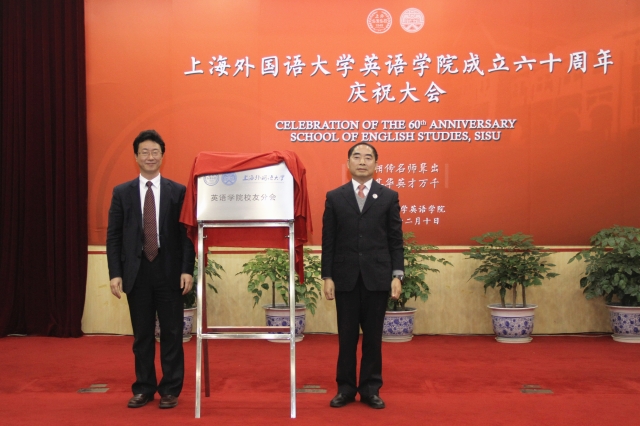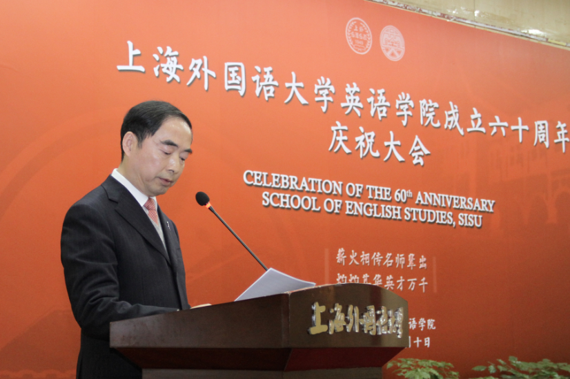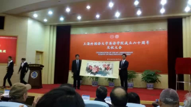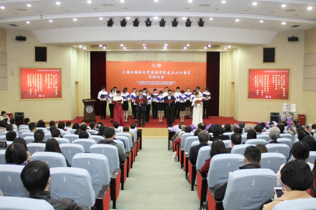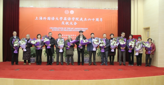 12月10日,伴随着喜庆欢快的音乐,英国正版365官网虹口校区内彩旗舞动、喷泉盛放,英国正版365官网成立六十周年庆祝大会在第一报告厅隆重举行。英国正版365官网副校长冯庆华教授,英国正版365官网前党委书记、校长,英语系前系主任戴炜栋教授,英国正版365官网前党委书记、英语系前党总支书记吴友富教授,北京外国语大学英国正版365官网院长张剑教授,以及来自校机关部处领导,兄弟院系党政领导,英国正版365官网退休教师代表及全国各地校友等200余人汇聚母校,共度庆祝英国正版365官网六十华诞。