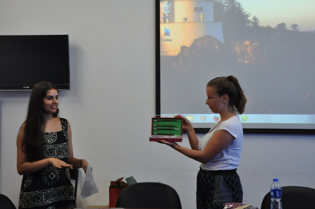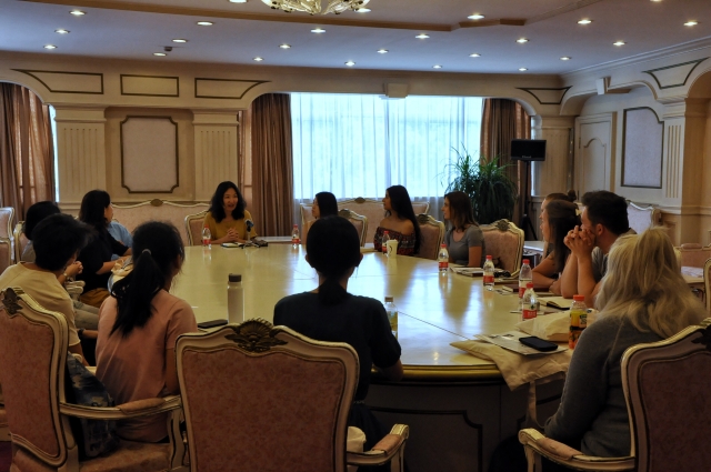 在课堂中,中外学生以“结对子”的学习方式共同讨论,课后共同交流,分组共同完成课堂展示等学习任务。在暑期项目最后阶段的展示环节中,中外学生分组合作,进行项目的陈述与展示。各位同学的陈述内容丰富多样、颇具洞见,话题涉及中国的风土人情、茶文化、餐饮、历史以及中外礼仪、人际关系比较等;展示中,李梅老师对各位同学的陈述进行了精彩点评,各位同学也就相关话题进了进一步的讨论。