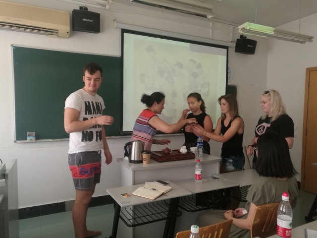 中国文化英文课程暑期项目以15场专题英文讲座为主,还包括太极、剪纸等中国文化体验课程以及短期出游的文化考察活动。15场专题讲座从多个方面角度诠释讲解中国文化,既有哲学、宗教、书法、戏剧、中医、音乐等中国传统文化等内容,又有中国戏曲、茶文化、中国珠宝设计以及当下一带一路进程等专题讲座。 既有对中国文化宏观上的概述和讲解介绍,又有对中国社会文化典型现象的探讨和分析。整个项目的15场讲座既独立成篇,又相互联系,构成了一个有机的整体,理论阐述与现象分析相结合,宏微互参,帮助同学们了解中国文化的渊源、承继、嬗变及其在现实生活、风俗习惯等层面的具体体现。授课教师不仅包括英国正版365官网的专任教师,还邀请了来自美国蒙大拿大学的曹振教授、同济大学的吴赟教授、复旦大学的陈靓教授进行授课,学院外籍教师Curtis Evans也为本次暑期项目带来了两场讲座,受到了同学们的欢迎与好评。