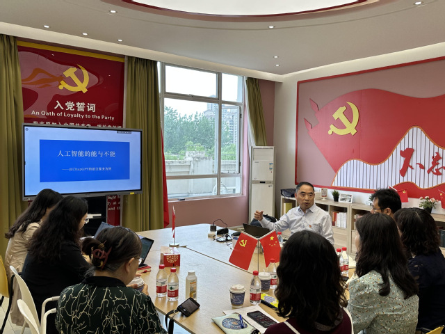 冯教授与时俱进、终身学习、关注前沿的意识令人钦佩,专业的辅导报告不仅让大家学到了最新的应用技术,更强化了未来教学、科研、管理等各领域转型发展的意识。结合新形势下的教学实际,老师们认为我们应当及时思考和革新教学方法、评估方式等内容,以积极应对人工智能平台对语言教学带来的影响,以更加开放包容的态度、更主动作为的意识,应对人工智能对外语教育带来的挑战,推动教育数字化转型发展。