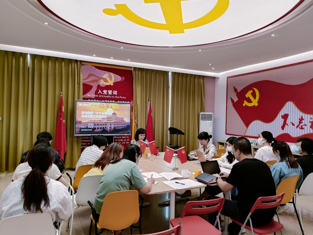 5月30日,学院党委书记杨雪莲为教工第二支部党员、学院管理团队讲授题为《学习把握“六个必须坚持” 推动学院工作新发展》的专题党课。杨老师讲解了习近平新时代中国特色社会主义思想“六个必须坚持”的内容,剖析了核心要义,解读了其与马克思主义一脉相承又与时俱进的立场、观点和方法。“六个必须坚持”是一个既彼此独立又相互贯通的有机整体,深刻揭示了习近平新时代中国特色社会主义思想的理论品格和鲜明特质,希望行政教辅团队坚持以学院师生为中心立足本职结合工作实际,坚持好、运用好贯穿其中的立场观点方法,对接学校学院发展战略和人才培养目标,凝心聚力推进学院各方面工作再上新台阶。