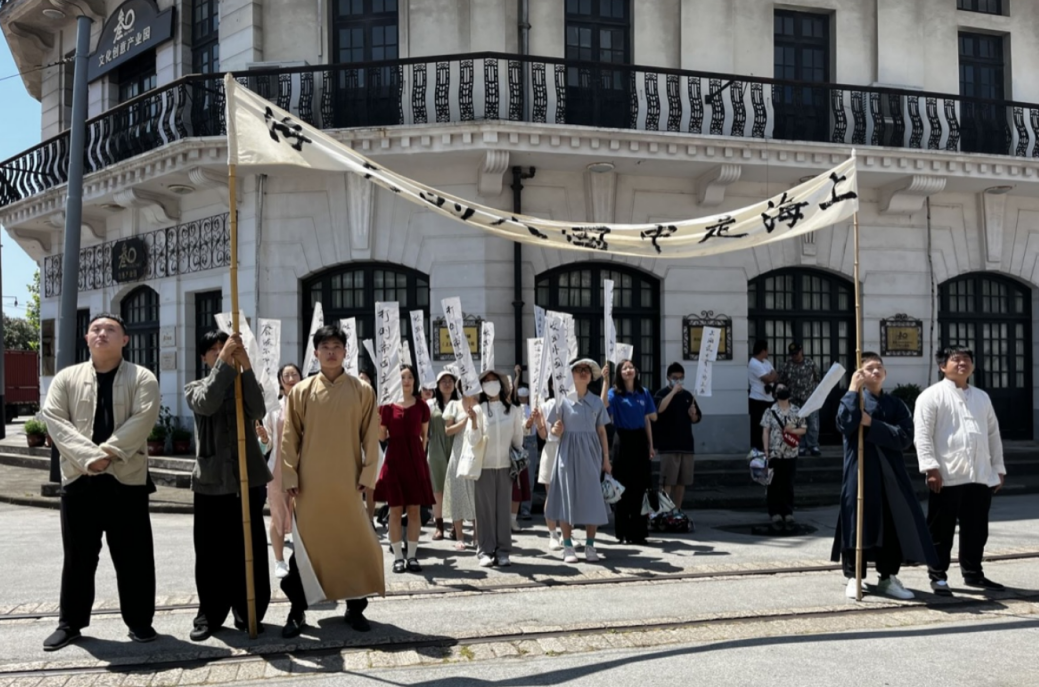 乘坐“初心号”红色巴士,同学们依次经过静安寺站、新青年编辑部、一大会址建筑群、一大纪念红船、南京路、帐子公司、上海大戏院、四行仓库、中共二大建筑群9个站点进行研学,通过互动体验、沉浸参演、展馆参观、影片展映等创新形式,重温1920年《共产党宣言》中文版诞生到1949年上海解放的光辉革命岁月。