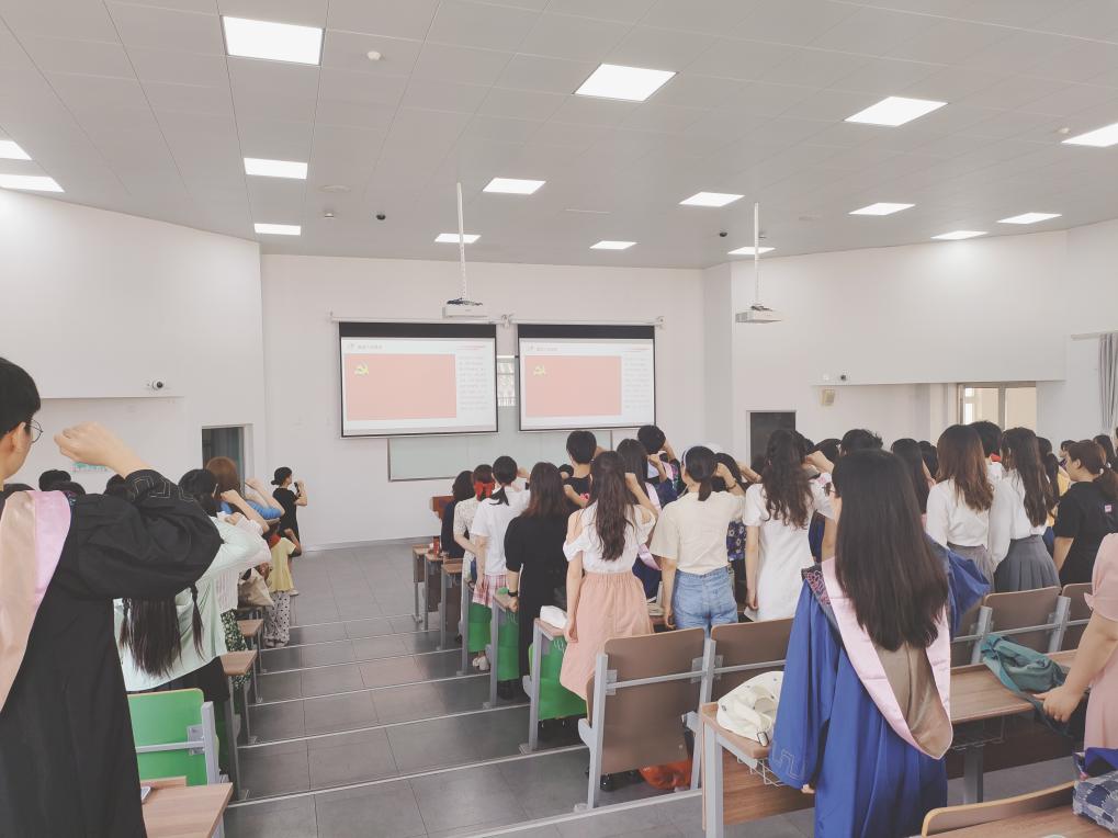 2023年6月8日,在国际歌庄严的旋律中,英国正版365官网2023届毕业生党员离校教育大会正式开始。学院党委书记杨雪莲、党委副书记曹原、专职组织员、毕业班辅导员以及2023届全体毕业生党员参加大会。
