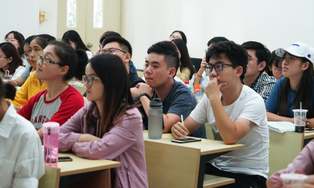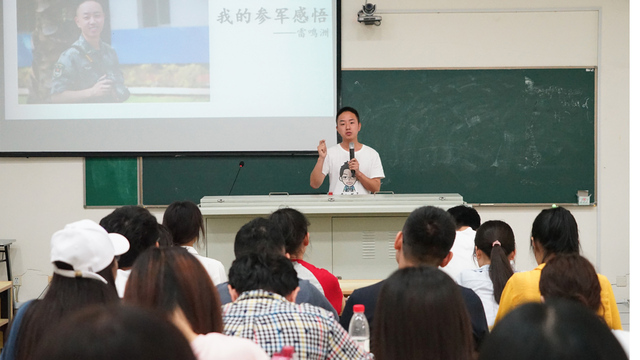 曾在空军94816部队服役的刘文锦也与大家分享了她的参军感悟,并对本次讲座做出了总结。刘文锦强调了自己当兵之后思想上的转变,将入党积极分子的身份与“新训班”“新兵连”作比,希望在座的大家值好属于自己的一班岗,居安思危,明确成为党员的目标是为国家和人民付出,而不是获得利益。同时,她结合国庆节的背景,以阅兵为切入点,启发同学们思考“为人民服务”的精神。