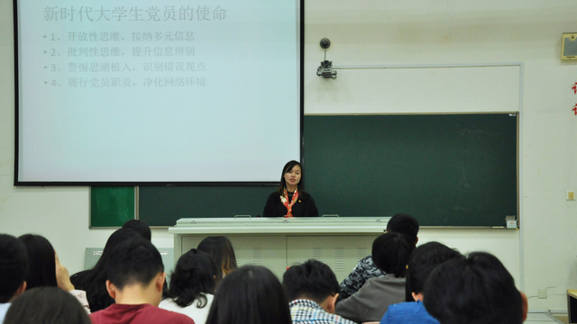 最后,周老师向新时代大学生党员提出希冀,并明确学生党员在互联网时代应有的责任担当。鼓励学生党员养成开放性思维,切实深化互联网政治参与;树立批判性思维,扎实提高自身媒介素养;高度警惕不良思潮植入,明辨是非谬误;恪守党员职责,抓牢网络政治麦克风,争当抵制不良思潮的排头兵。