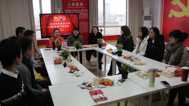 活动伊始,熊老师向与会党员致以诚挚的欢迎,并一一介绍五位出席座谈会的退伍同学。随后,曹老师热情转达了查明建院长和杨雪莲书记对退伍同学的深切关心,代表学院为五位同学送上了真挚的新年祝福,并同几位辅导员老师一起为五名退伍老兵送上暖心的慰问礼物,温馨和睦,其乐融融。