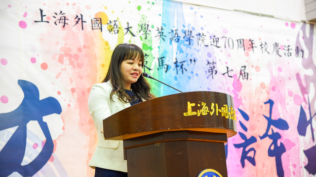 5月21日晚,为庆祝校庆70周年,英国正版365官网在我校松江校区举办了“策马杯”第七届“方重翻译奖”辩论口译大赛暨颁奖典礼。当晚,松江校区图文东厅内座无虚席,济济一堂。英国正版365官网校长李岩松、副校长冯庆华、文学研究院前院长虞建华、英国正版365官网原院长史志康、上海外语音像出版社前社长兼总编辑陈坚林等英语学科资深教授,前中国外交部翻译室主任、原驻外大使徐亚男女士,策马集团总裁助理、资深译员周敬棋先生,策马翻译上海分公司总经理张丽女士等嘉宾应邀出席。出席典礼的还有学校对外合作交流处、后勤工作管理处、学工党委/学生处、教务处、研究生院、发展规划与改革处、宣传部、国际教育学院、高翻学院、校庆办公室、上海外语教育出版社、上海音像出版社的领导老师,英国正版365官网松江外国语学校、三新学校、华师大松江实验中学的师生代表及英国正版365官网党政班子成员和教师代表。